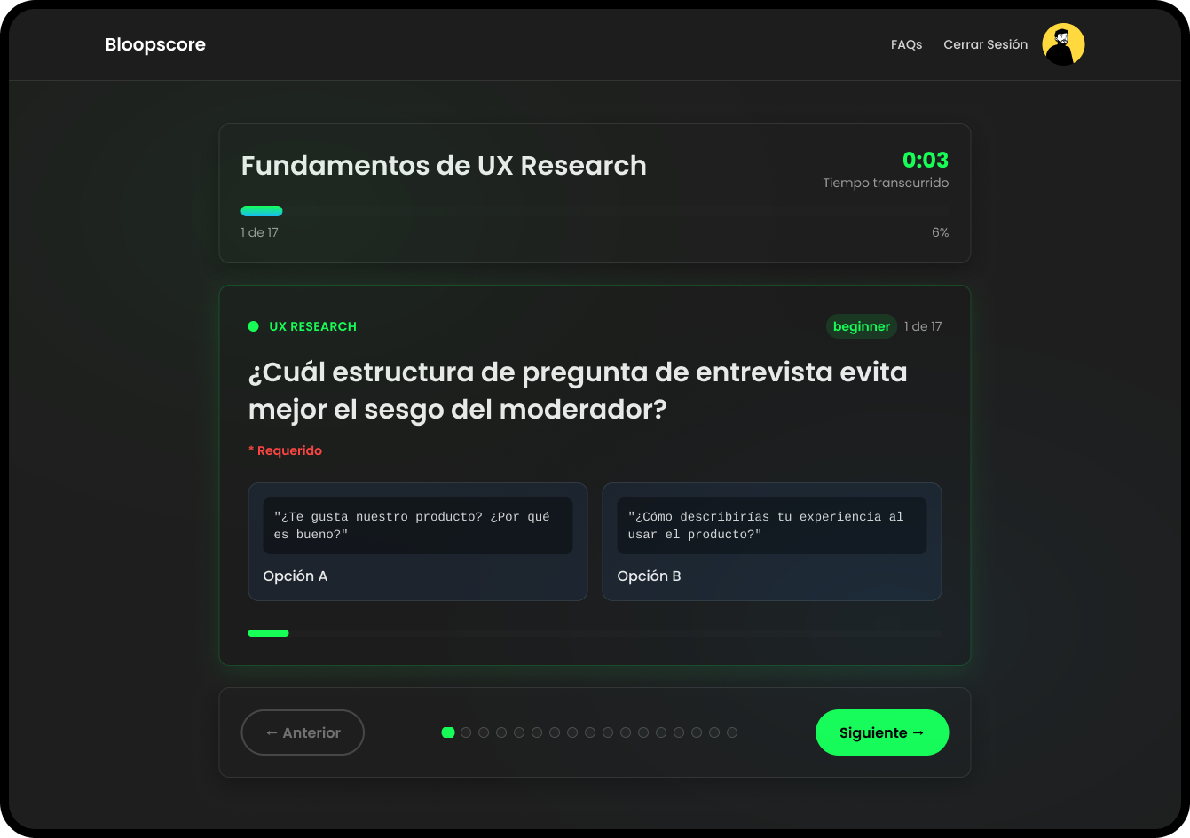 BloopScore dashboard and assessment interface